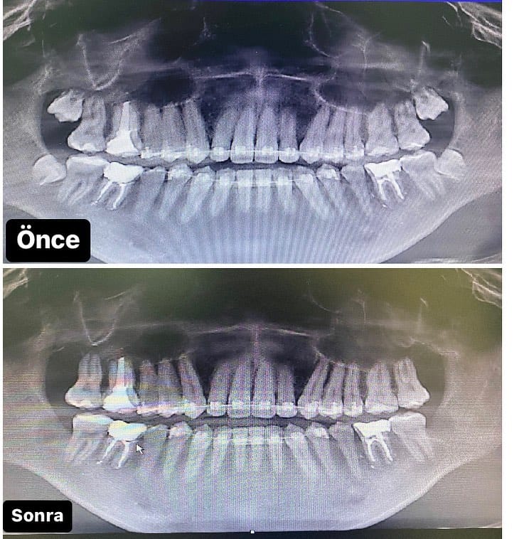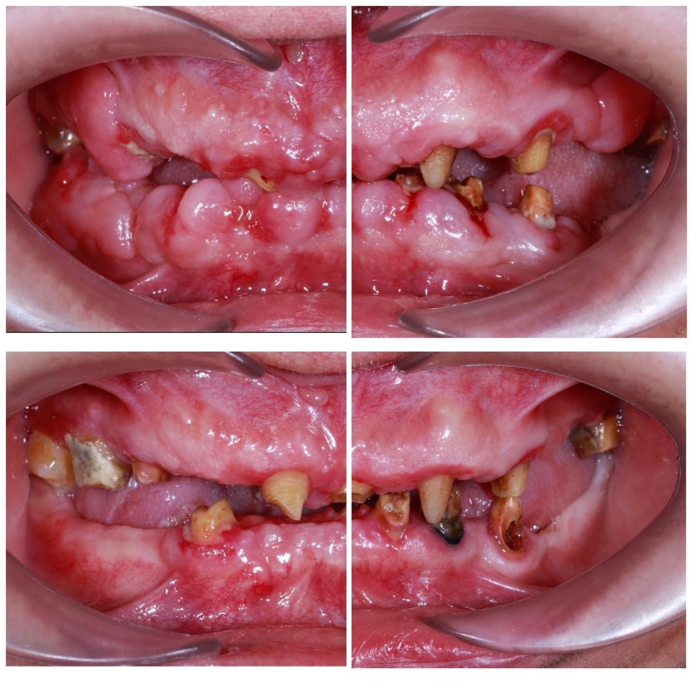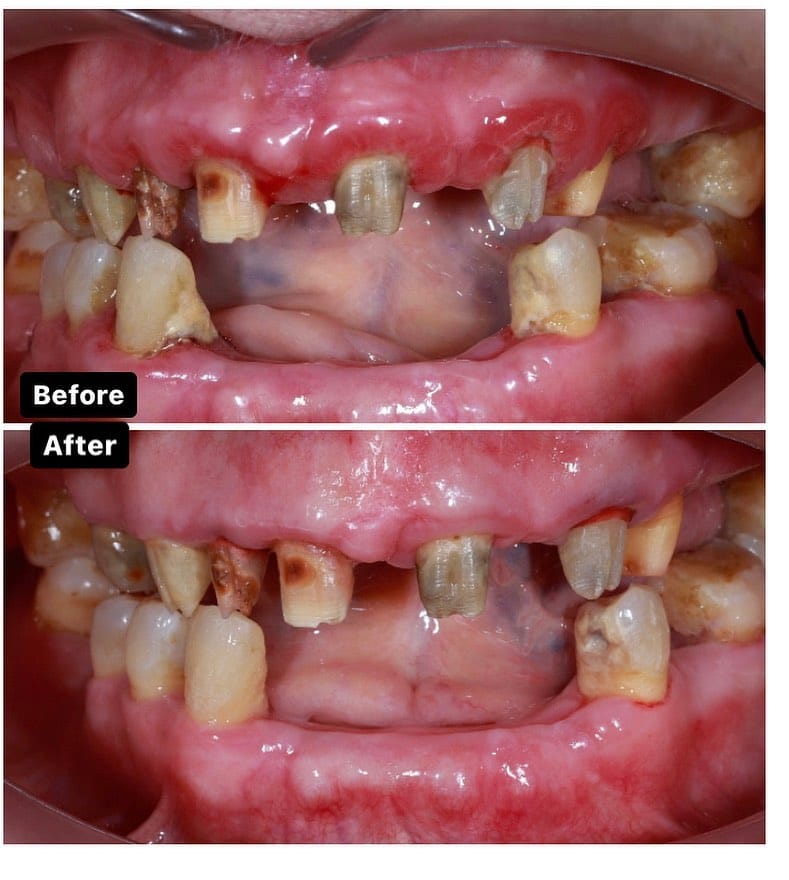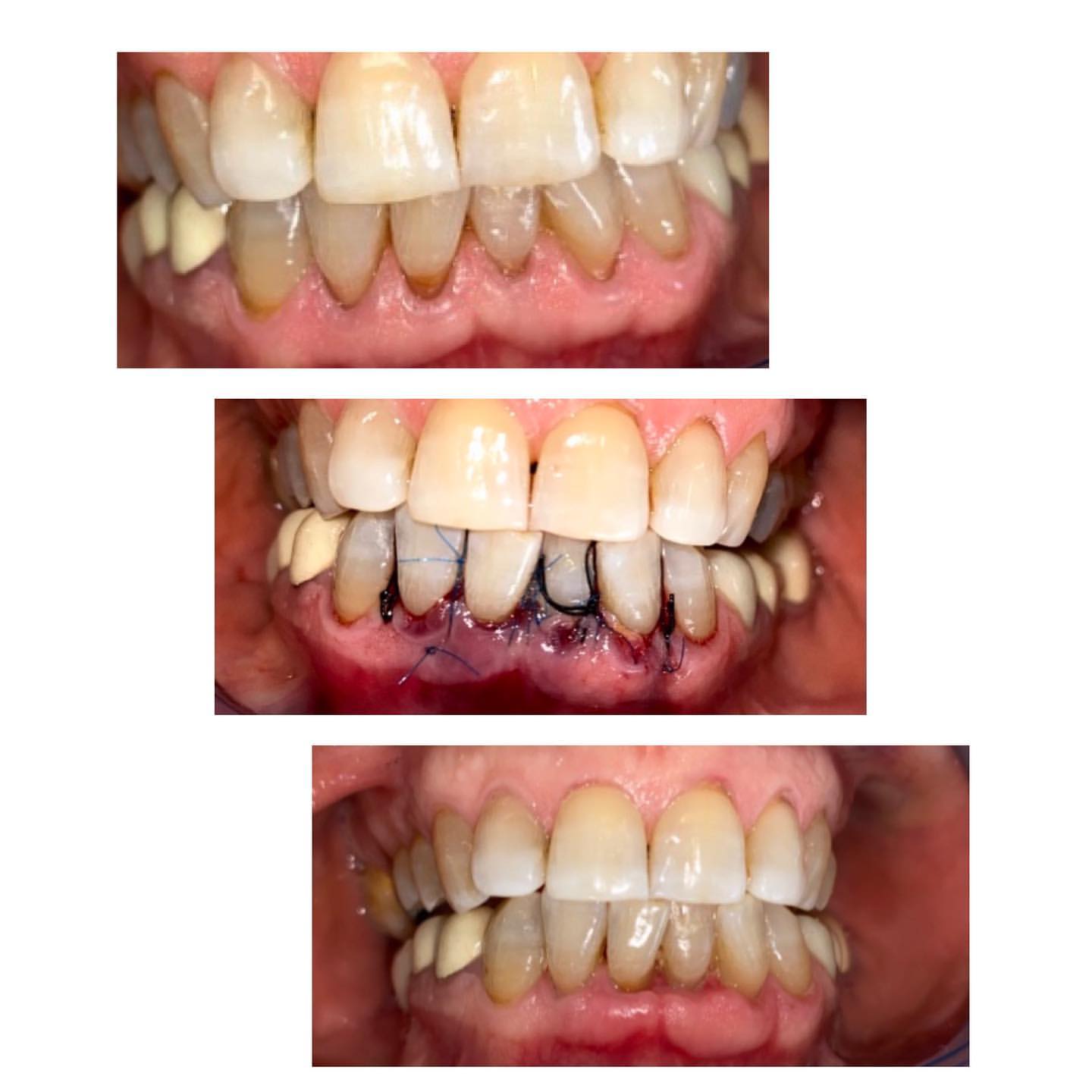 Çoxlu diş əti çəkilməsi olan xəstənin damağdan aldığımız yumuşaq toxuma ile tam qapadılması