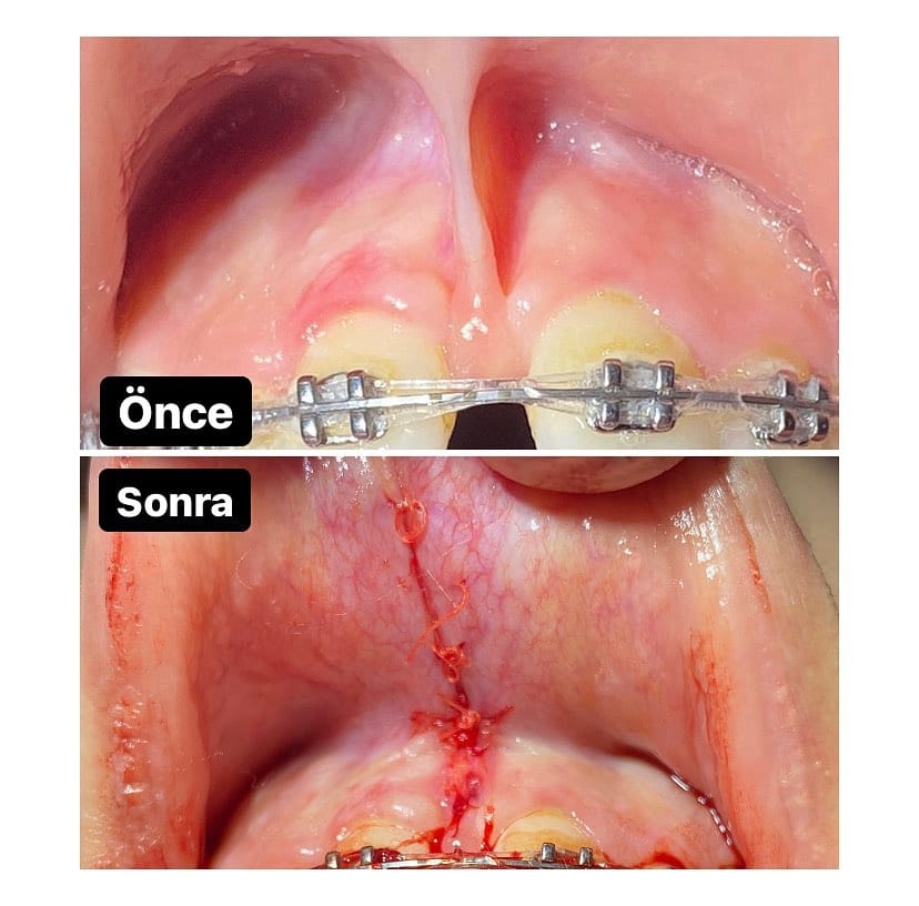 Dodaq Frenulum, orta mərkəz dişlərin aralanmasına səbəb olduğunda onu kəsmək göstərişdir
