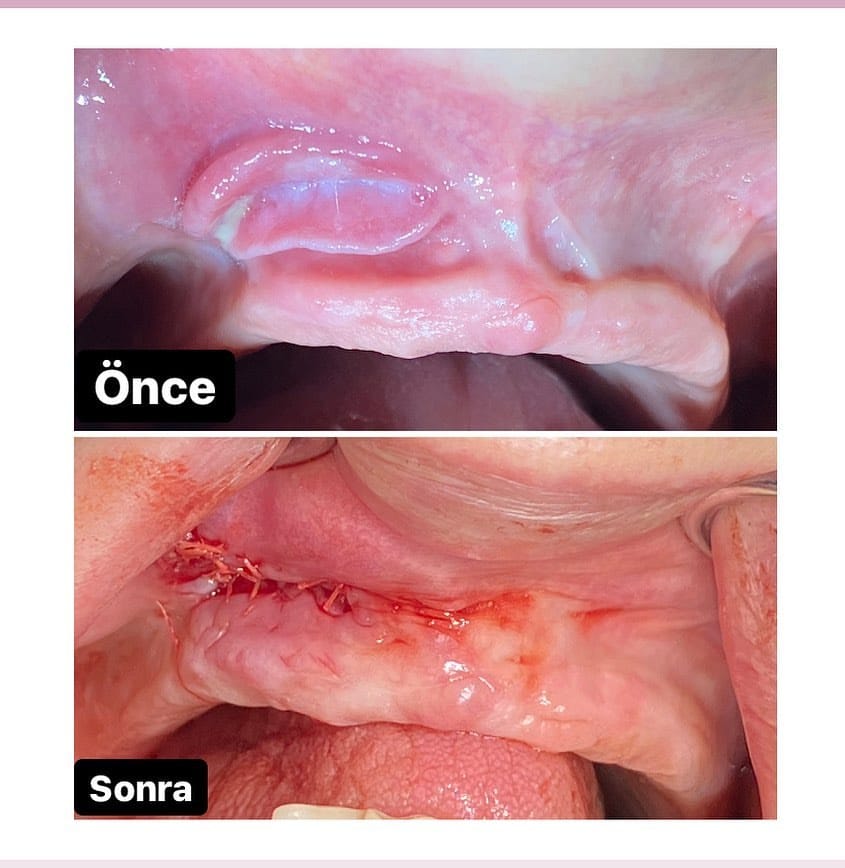 Diş əti çəkilməsi olan xəstənin tunel əməliyyatı ilə çəkilmənin qapadılması